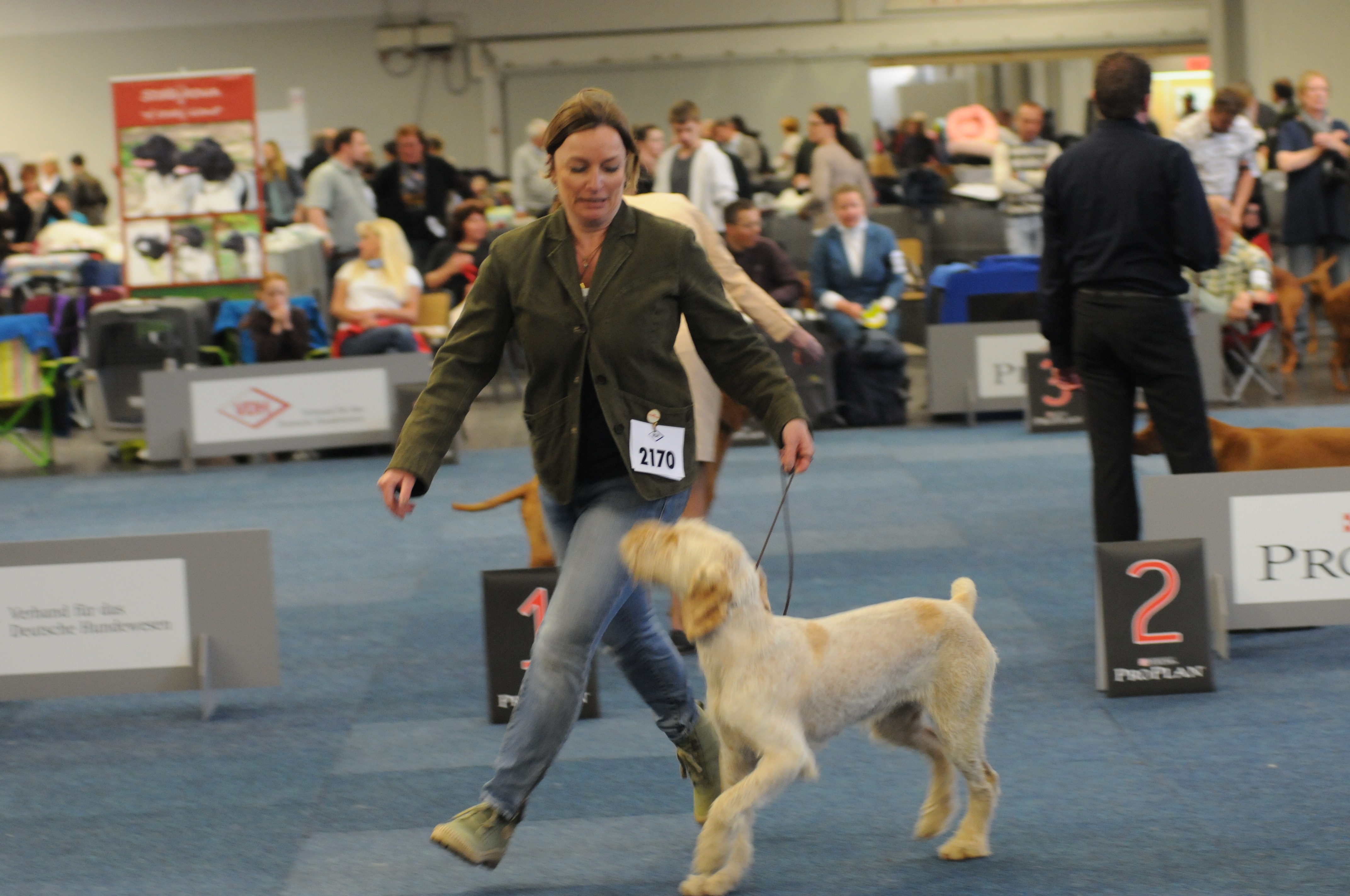 14.09.2013: Auch auf der Nat. Rassehunde-Ausstellung in Krefeld erhält unsere Colpo di Fulmine Bice ein V1 in der Zwischenklasse, das CAC, BOB und den Titel ,Rheinlandsieger‘. Wir sind superstolz auf die Maus.