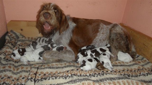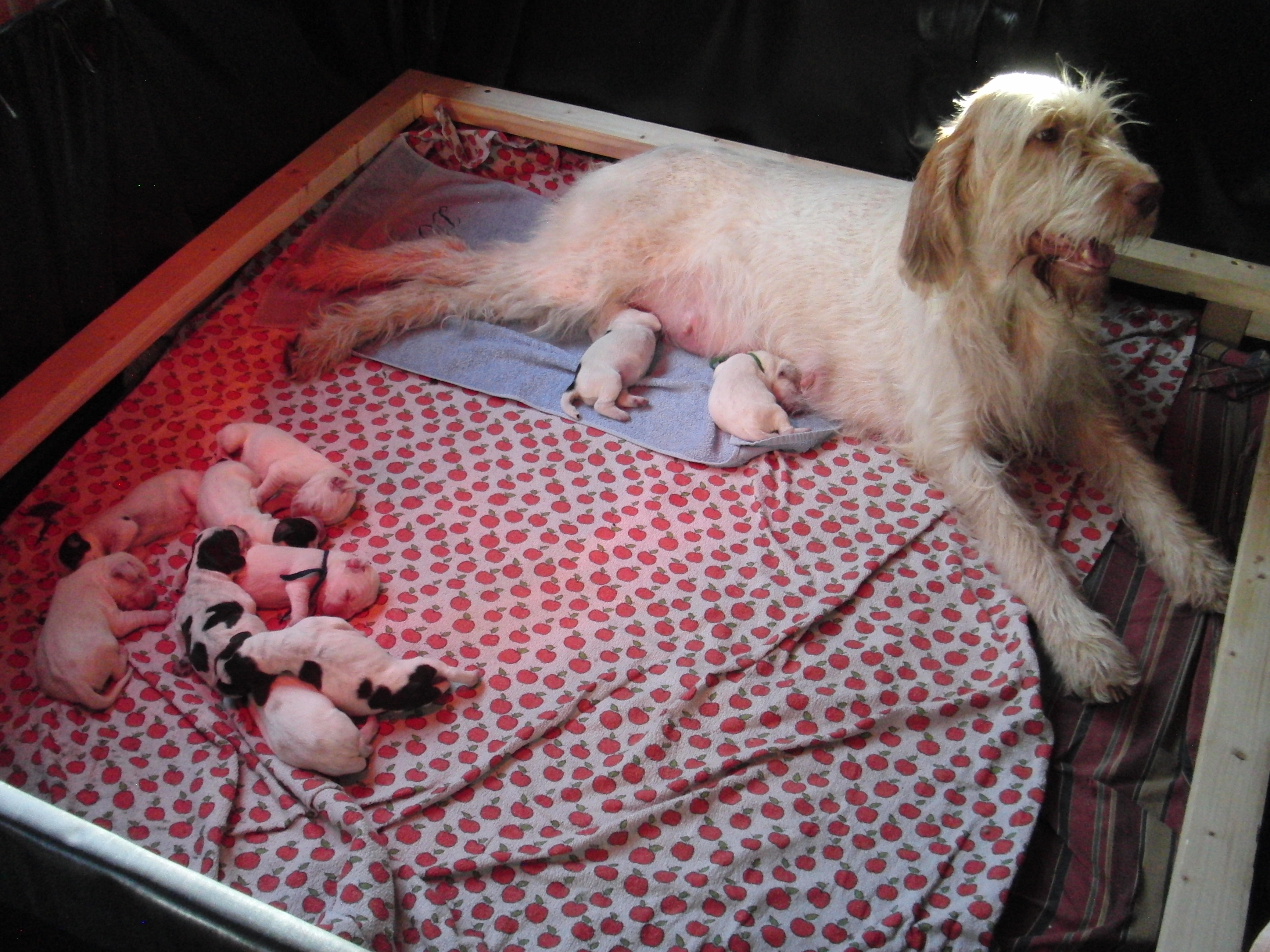 20.02.2012: Die zizilianische Hochzeit hat Früchte getragen: Pippa bringt 8 kräftige Welpen zur Welt. Mehr unter ,B-Wurf’.